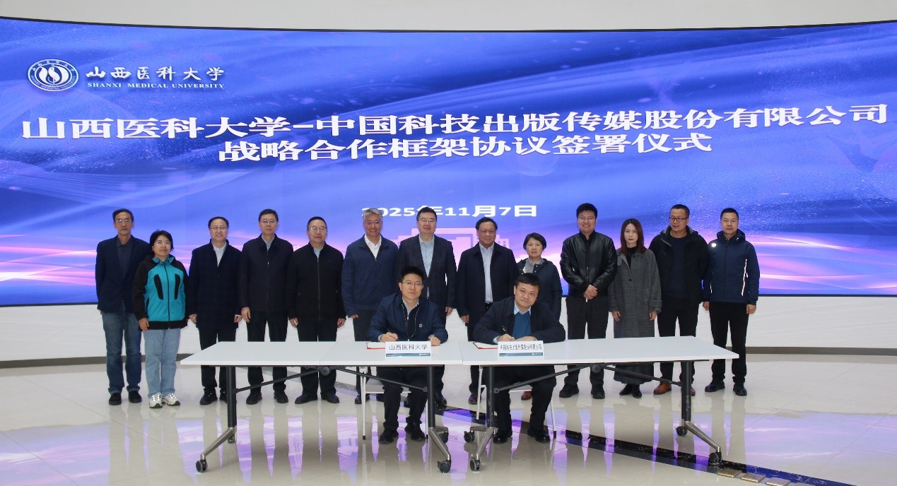 11月7日上午, 山西醫(yī)科大學—中國科技出版?zhèn)髅焦煞萦邢薰緫?zhàn)略合作框架協(xié)議簽署儀式在山西醫(yī)科大學圓滿舉行,雙方攜手開啟共筑學術高地、服務醫(yī)學創(chuàng)新的新篇章。